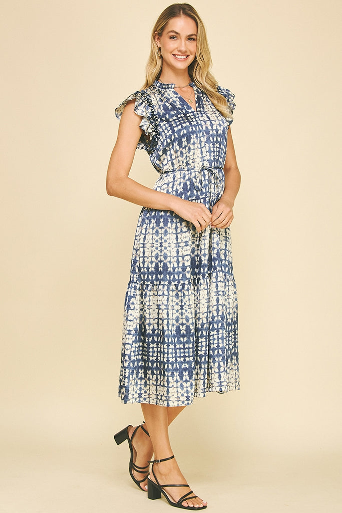 The Halima Midi Dress charms with playful ruffled details at the neck and sleeves, adding a flirty touch to your look. A self-tie waist lets you create the perfect silhouette, while the tiered skirt brings movement and fun to every step. Fully lined for comfort, this dress is your go-to for effortless style and whimsical elegance.