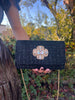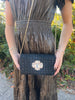 * 5"H x 8"W x 1 3/4"D * Gold Hardware and Chain Strap with 22" Drop