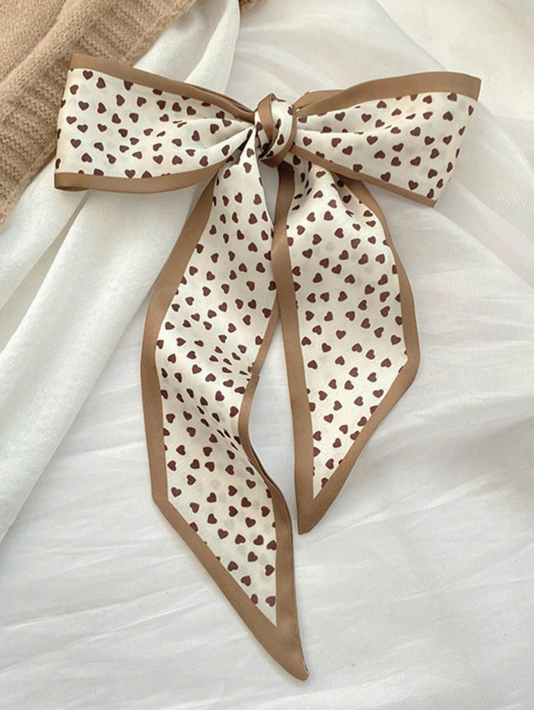 Add a touch of playful style with this versatile small scarf in this adorable brown heart print! Use as a hair accessory, tie around boots, or hats to elevate your outfit!