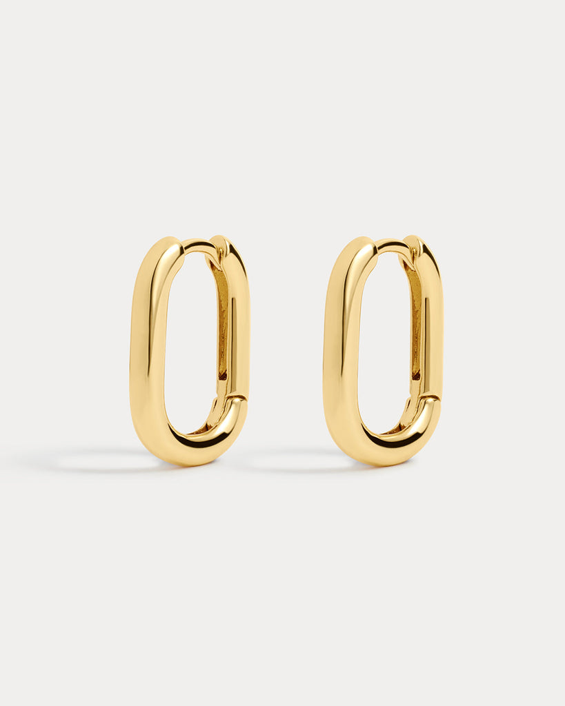 Add a touch of everyday sparkle with these playful Chain Link Huggies in gleaming 14K Gold. Lightweight and comfy, each tiny hoop features a secure snap closure and a curved lever bar that hugs your ear just right. Crafted from plated brass with waterproof, tarnish-free coating and surgical steel posts, they’re perfect for sensitive ears. Nickel- and cadmium-free, these little links bring durable shine and effortless style to your daily look.