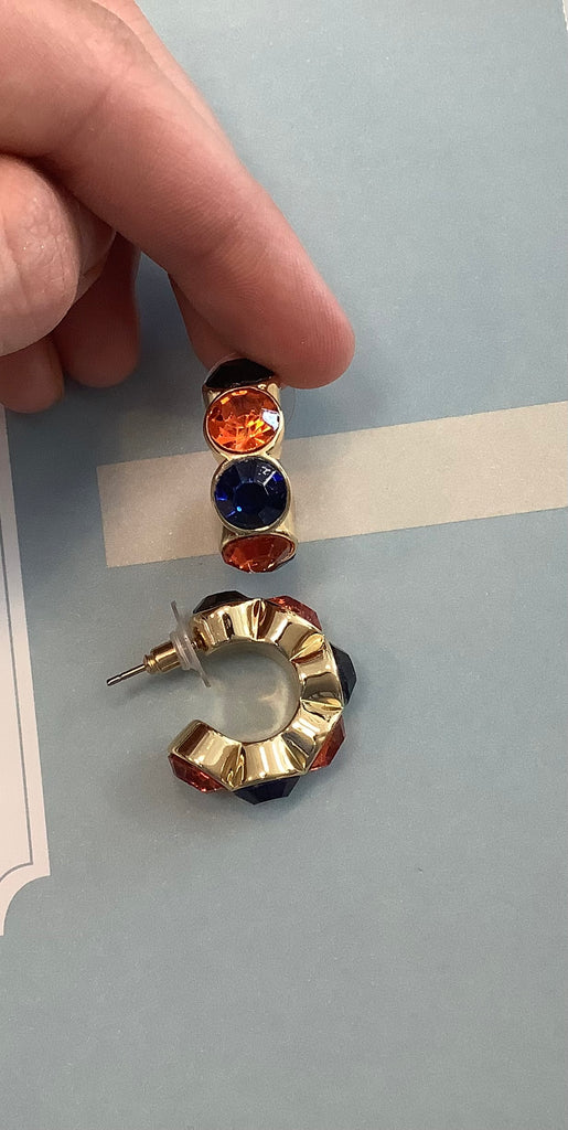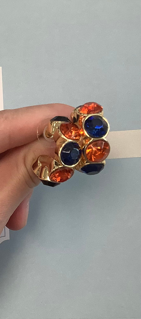 Elevate your game day look with our Sylvie Earrings in Navy + Orange. These chunky jewel huggie hoops add a touch of playful sophistication. Perfect for game day or any day!