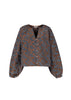 Embrace bold elegance with the Boldo Ice Brown Blouse. Crafted from textured fabric in striking iced brown and blue hues, its loose fit and long puffed sleeves with tightened cuffs create a dramatic silhouette. The daring V-neck and front buttoning add a confident edge, perfect for making a statement wherever you go.