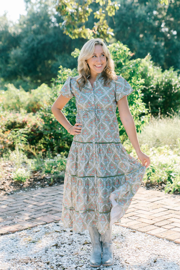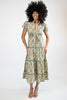 The Hurley features a drawstring waist, tiered skirt, and a functional button front. The double flutter sleeves are the perfect accent to this wardrobe staple.
