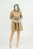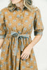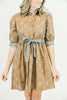 The Kerra features a collared neckline, short puff sleeves, an adjustable drawcord waist, and on-seam pockets.