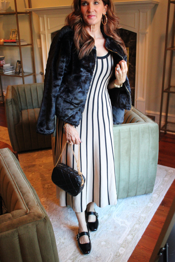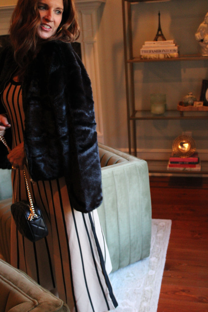 Turn heads like a Bond Girl in Paris with the Mica Faux Fur Jacket in sleek black. This elegant, stunning piece adds a touch of suave sophistication to any outfit. Featuring a chic zip-up design, it pairs perfectly with a dress or a pretty top and flowy pants teamed with heels. Whether you're stepping out for a night on the town or making a statement at brunch, this jacket delivers effortless glamour with a playful edge.
