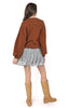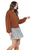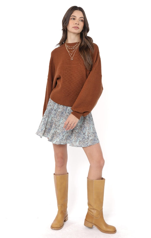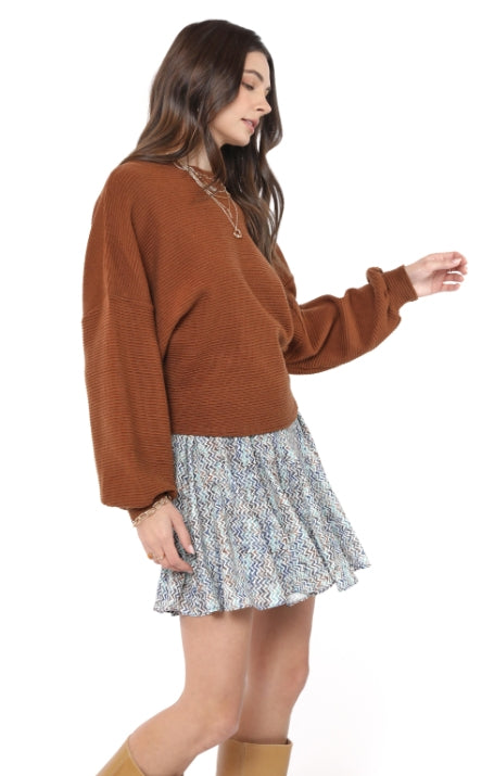 Embrace comfort with a playful twist in this brown dolman sleeve top. Its long, roomy sleeves give you freedom to move, while the cozy fit makes it perfect for spontaneous strolls or relaxing days. Add a little flair to your casual wardrobe with this effortlessly stylish piece.