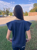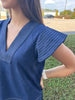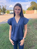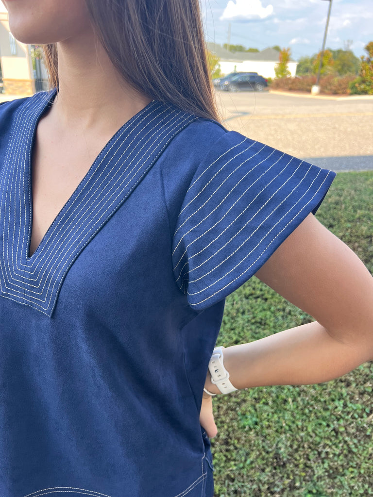 Add a dash of charm to your wardrobe with the Quinn Navy Flutter Sleeve Top. Featuring a soft navy suede fabric and a flirty V-neck, its flutter sleeves bring a playful, breezy vibe perfect for any occasion. This top effortlessly blends comfort with style, making it your new go-to for casual days or fun nights out.