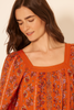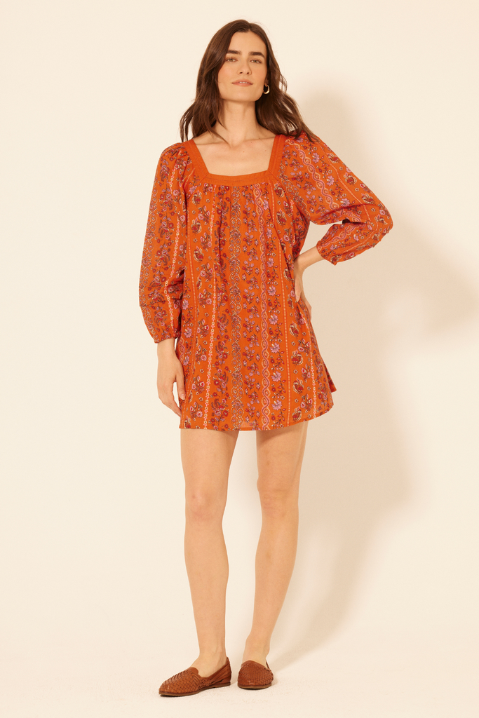 The Siesta Dress in Wild Poppy combines playful style with charming details like inset lace along the neckline and elastic cuffs for a softly gathered, comfy fit. Its long sleeves and mini length create the perfect carefree look for everyday wear. Made from 100% cotton, this dress feels light and breathable. Hand wash to keep it looking fresh and fun.