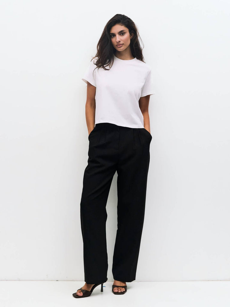 The Lanie Top in White is your new favorite classic tee with a twist. Made from sturdy heavyweight cotton jersey, it’s built to last and keeps you comfy all day long. Featuring a unique reversed overlock stitch, this top adds a fun, subtle edge to your everyday look. Perfect for layering or rocking solo, The Lanie fits right in with your all-season, any-day style.