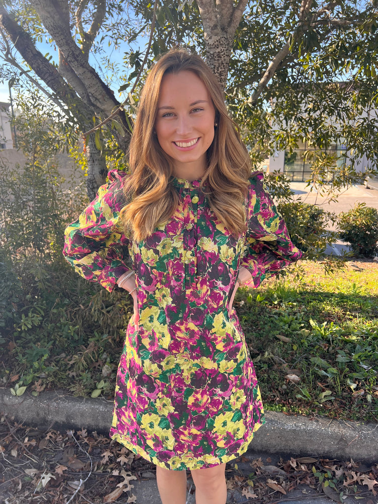 Meet your new go-to mini dress that's equal parts chic and fun. The half button-down front lets you show off as much or as little as you like, while long sleeves keep things polished and put-together. Crafted from a smart blend of 76% polyester and 24% viscose with a polyester lining, this dress moves with you throughout your day without missing a beat. Dress it up or down—it's ready for whatever adventure calls.