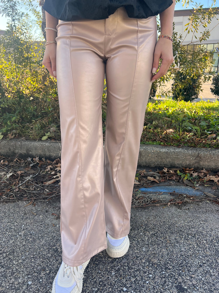 Elevate your holiday wardrobe with these Rio Champagne Pants in a gorgeous blush pink hue that's perfect for Christmas, New Year's, or Valentine's Day celebrations. Crafted from a comfortable 55% polyester and 5% PU blend, these pants offer a flattering fit that works beautifully with cute tops and ballet flats for an effortlessly chic look. Easy care: simply hand wash cold, lay flat or hang to dry, and skip the bleach. Your new go-to festive favorite awaits!