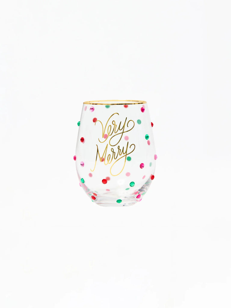 Celebrate in sparkle with our Very Merry Stemless Wine Glass, featuring festive lettering adorned with shimmering rhinestones. This glamorous glass adds a touch of whimsy and shine to your holiday gatherings, making every sip feel bright and joyful all season long.