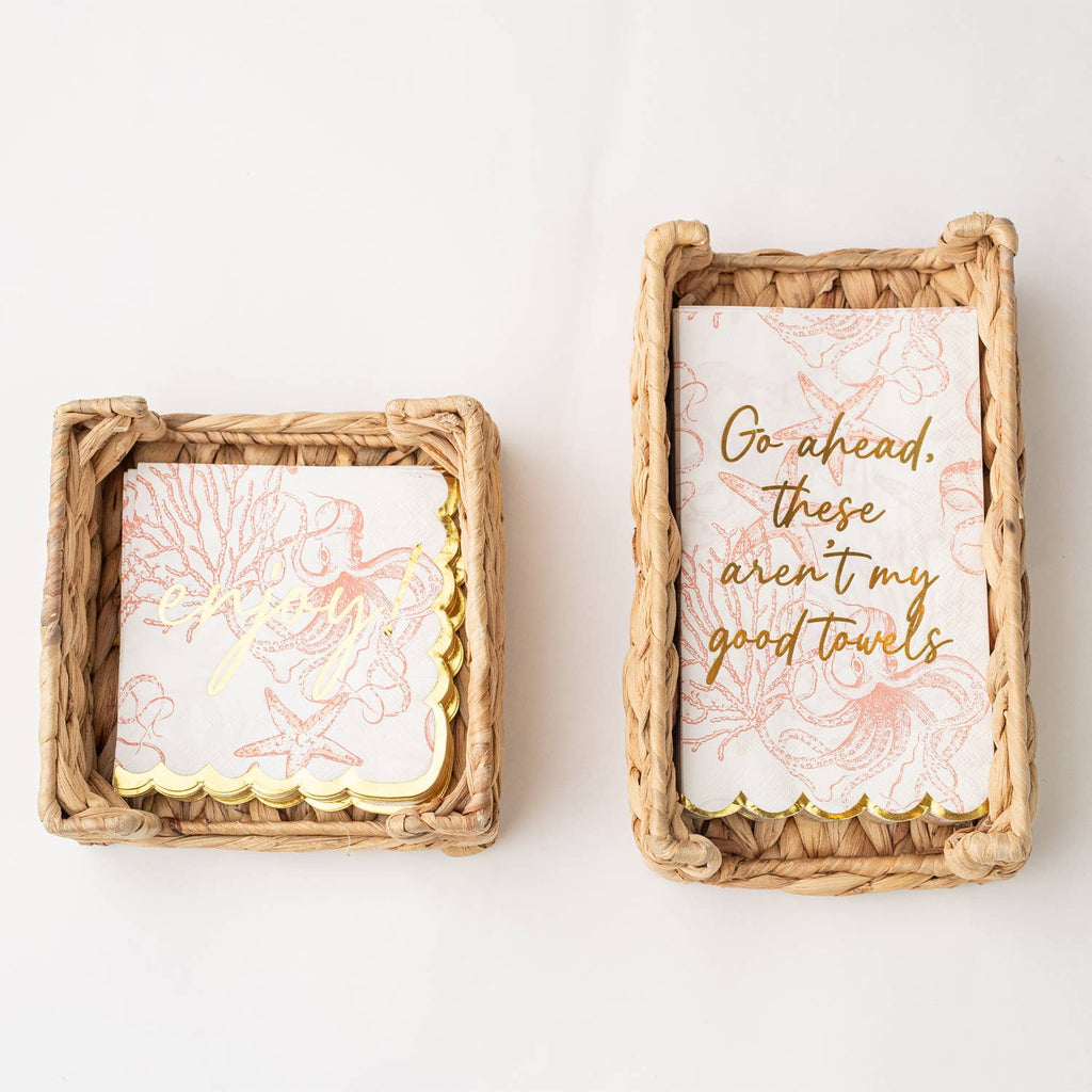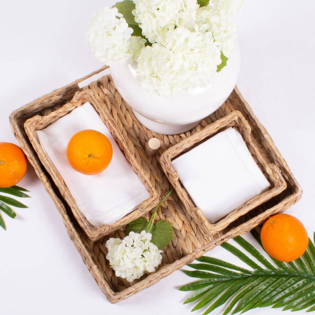 Elevate your entertaining game with our Natural Woven Beverage Napkin Tray—a charming water hyacinth creation that keeps your paper napkins neatly corralled and Instagram-ready. This lightweight yet sturdy tray slides seamlessly into any décor mood, whether you're channeling coastal cool, rustic charm, or boho vibes. Designed to fit standard beverage napkins perfectly, it transforms a practical necessity into a stylish tabletop moment. Mix and match with our coordinating natural home collection—trays, placemats, and napkin rings—to create a cohesive, effortlessly put-together look that says "I've got this" without trying too hard.
