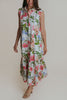 Elevate your warm-weather wardrobe with the Eloise Harbor Island Floral Dress. Crafted from breathable cotton poplin, this sleeveless style features a collared V-neckline and charming ruffle hem detail. The adjustable fabric belt cinches your silhouette while covered buttons add a polished touch. Perfect for garden parties, brunch, or casual outings. Model is 5'7" wearing size S. Dry clean only.