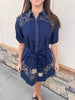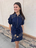 Navy French Knot Short Dress
