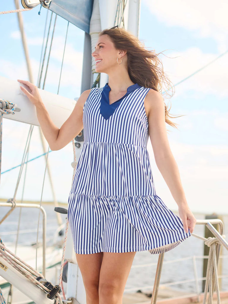 Meet the Newport Dress - ready for any sunny day, this UPF 50+ protection dress will be your new go-to sleeveless style. Its stand collar and stitch-accented v-neckline add a touch of refinement with a flattering A-line silhouette. Luxurious & lightweight, this versatile dress features one-of-a-kind print patterns. Plus, it has pockets!