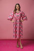The Pippy Midi Dress is a stunning addition to any wardrobe, crafted from 100% cotton cambric for a soft and breathable feel. This elegant midi dress showcases a unique custom block-print design, adding a touch of artisanal charm to your look. The flattering V-neckline enhances the feminine silhouette, while the long balloon sleeves provide a stylish and contemporary twist. With a length of approximately 48 inches from shoulder to hem on a size small, this dress offers a graceful and modest fit. Available in three sizes—small, medium, and large—each size is designed to ensure a comfortable and flattering fit for various body types. Perfect for both casual outings and more formal occasions, the Pippy Midi Dress effortlessly combines comfort with chic style.