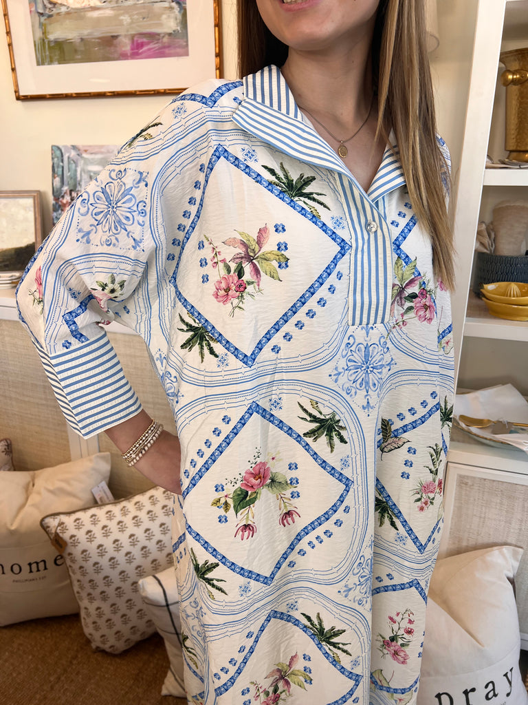 Embrace the season in this stunning Sema Floral Dress, where effortless elegance meets springtime charm. Crafted from a luxurious rayon and nylon blend, this beauty features half sleeves and a flattering button-down V-neck collar adorned with a crisp blue striped pattern. Chic side calf slits add movement and a touch of modern flair, making it perfect for everything from brunch dates to garden parties. Lightweight, breathable, and undeniably gorgeous—your spring wardrobe just got an upgrade.