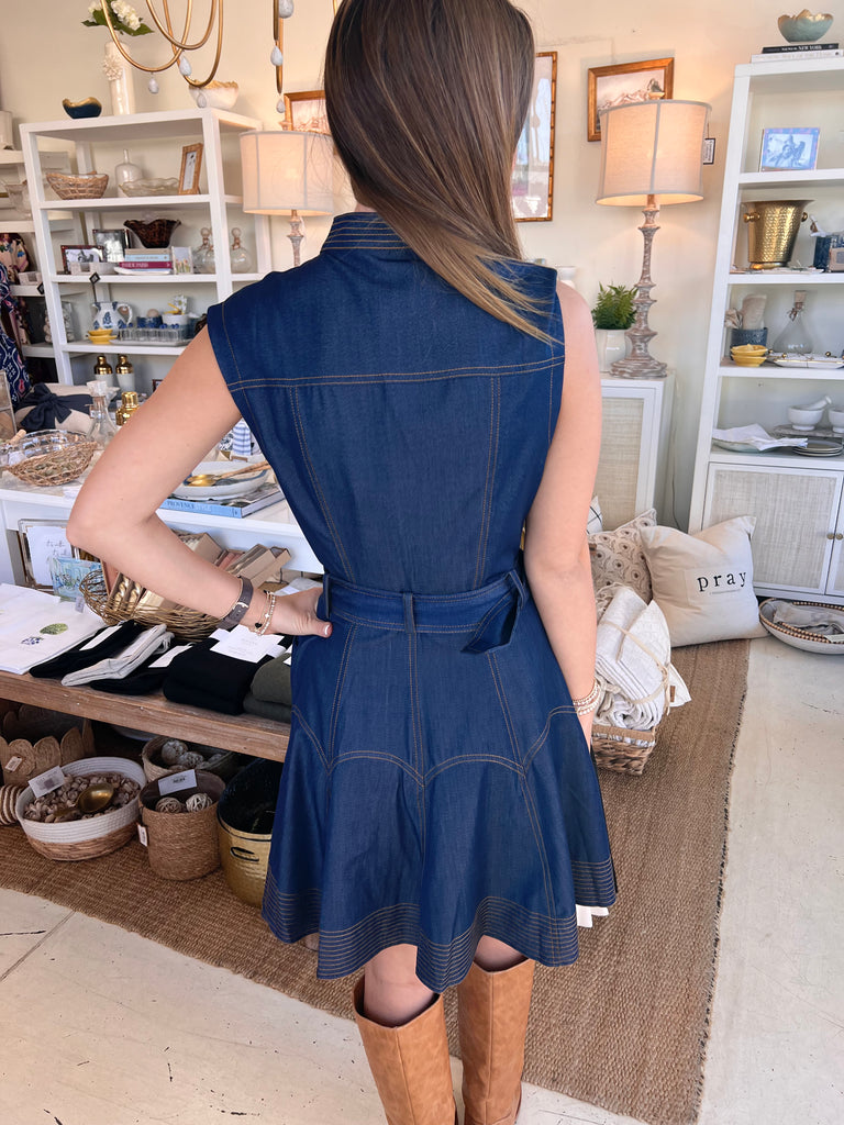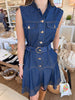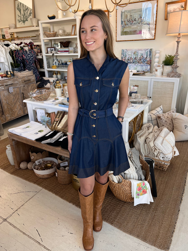 Introducing the Who's That Girl Mini Dress—your new go-to for effortless style! This navy denim mini features adorable gold buttons and a flattering belt that cinches at the waist. With its faux denim feel, it's lightweight enough for any season and versatile enough to dress up or down. Pair it with high-knee boots for an instant chic look, or style it your own way. Whether you're heading out for brunch or a night on the town, this dress delivers cute, confident vibes every single time.