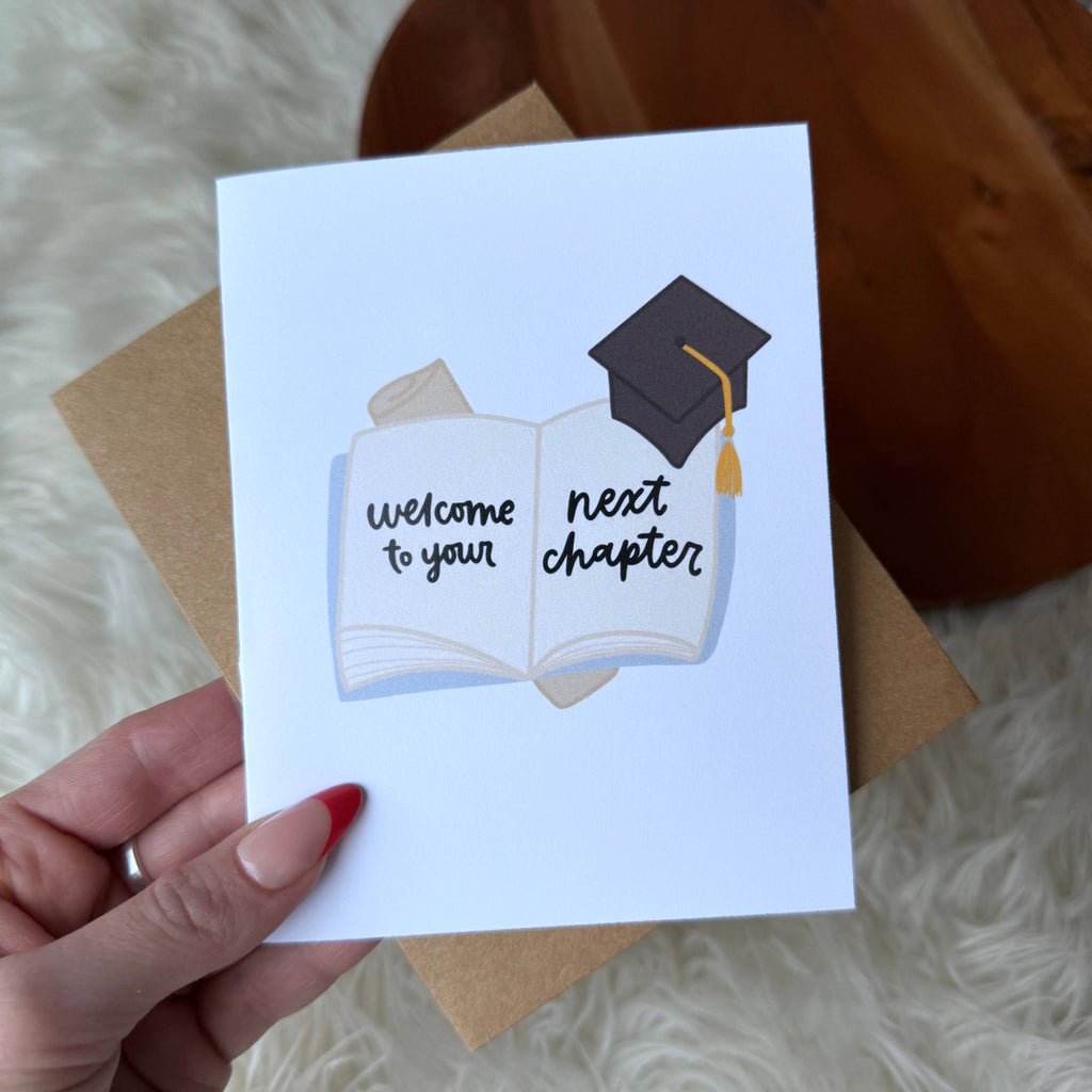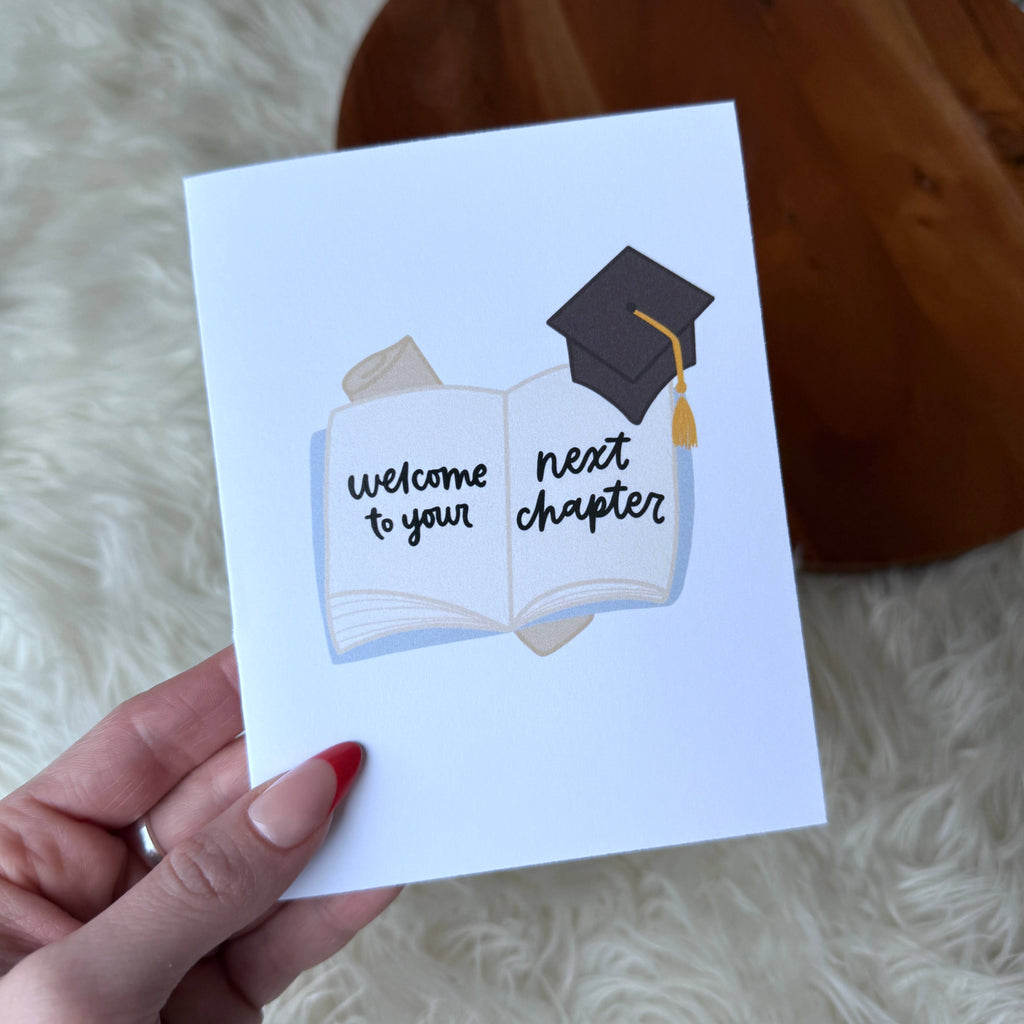 "Welcome to your next chapter" Graduation Book Card