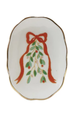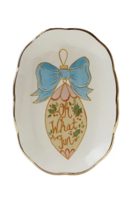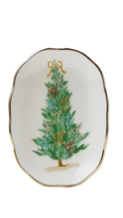 3"L x 2"W Stoneware Scalloped Dish w/ Holiday Image & Gold Electroplating, Multi Color, 3 Styles