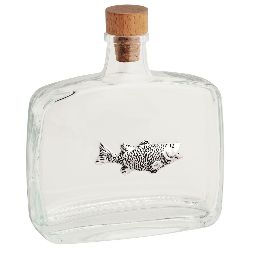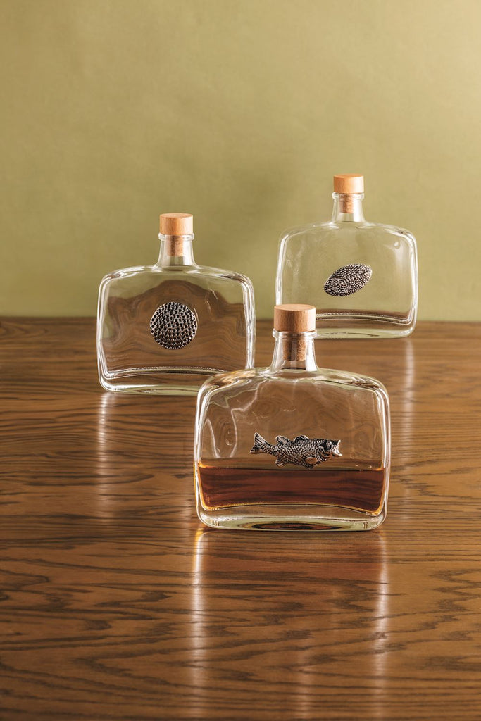 This glass decanter is not your average bottle! Wrapped in a cool cast aluminum icon exterior, it adds a bold touch to any table. Topped with a cork stopper and a wooden lid, it keeps your favorite drinks fresh while looking effortlessly stylish. Perfect for serving up fun and flair in every pour!