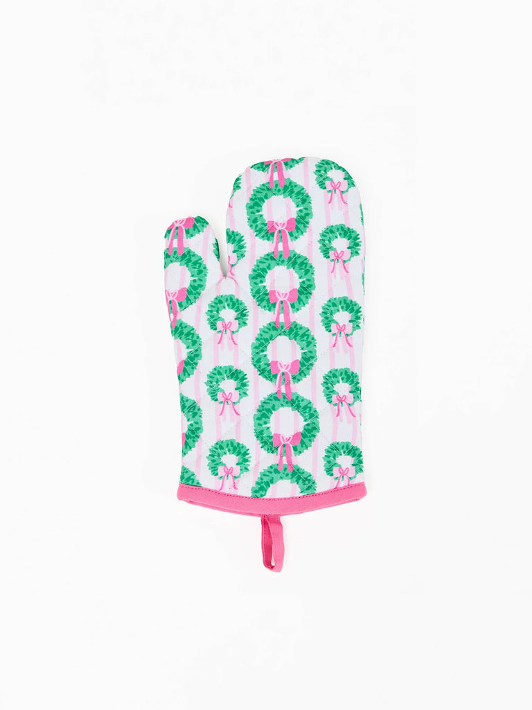 Add a playful twist to your holiday kitchen with our Rosy Wreaths Oven Mitt. With its sweet, sugarplum-inspired design and charming pink tones, this mitt brings warmth, whimsy, and a dash of seasonal style to every bake. A festive essential for cooking, gifting, or simply making spirits bright!
