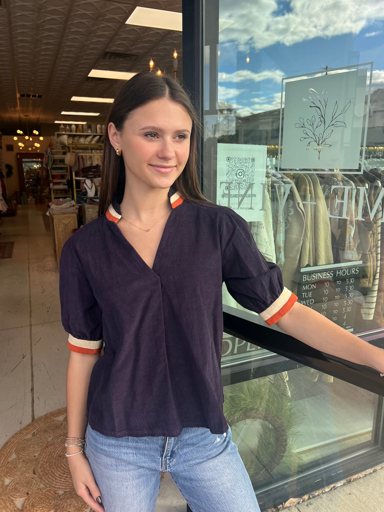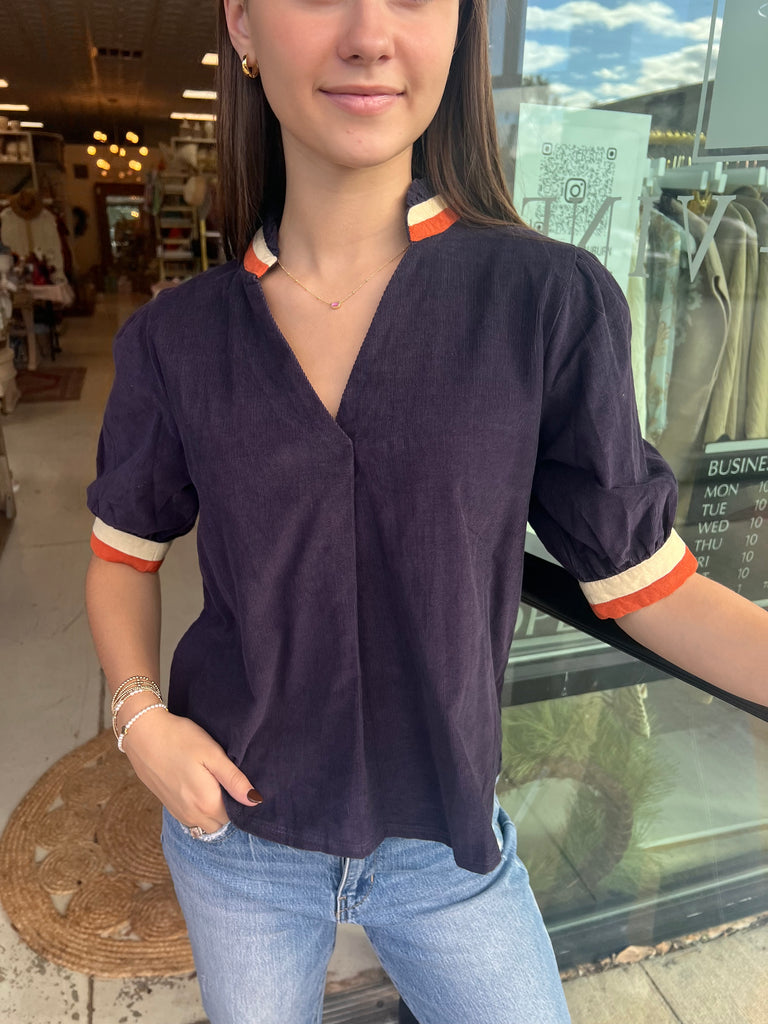 Cozy up this fall in the Claude Corduroy Top! Its soft corduroy fabric and playful v-neck design make it the perfect mix of comfort and style for crisp autumn days. Pair it with your favorite jeans and watch your fall wardrobe come to life.