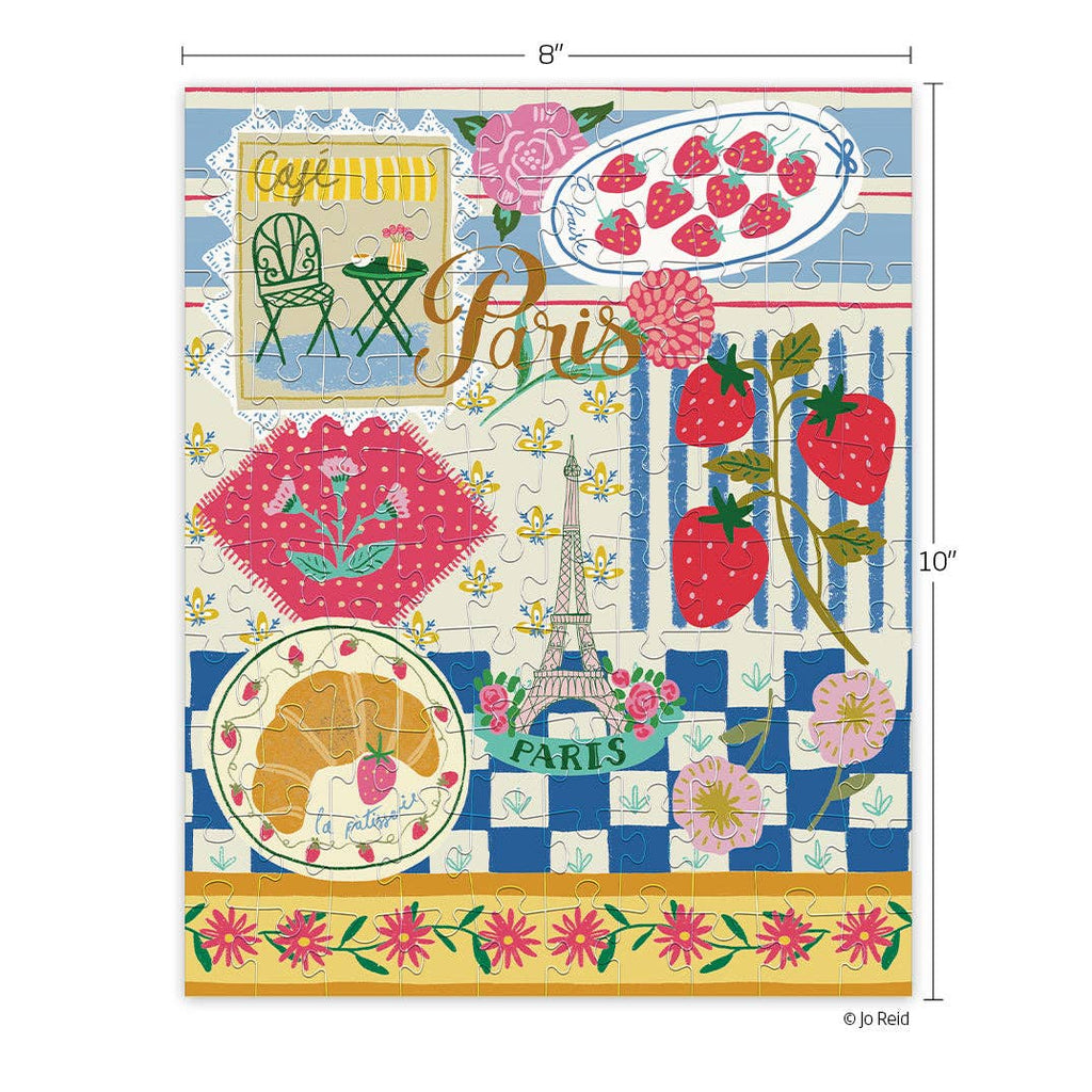 Paris Cafe is a sweet and colorful kids puzzle that feels like a stroll through a French postcard. Kids will love the mix of charming cafe chairs, fresh strawberries, croissants, flowers, and a petite Eiffel Tower tucked into the design. The artwork is bright, friendly, and full of playful Parisian details that make the whole scene feel warm and inviting. This 100 piece Puzzle Snax set is a fun, easy build sized perfectly for little hands, travel, or a quick creative break.