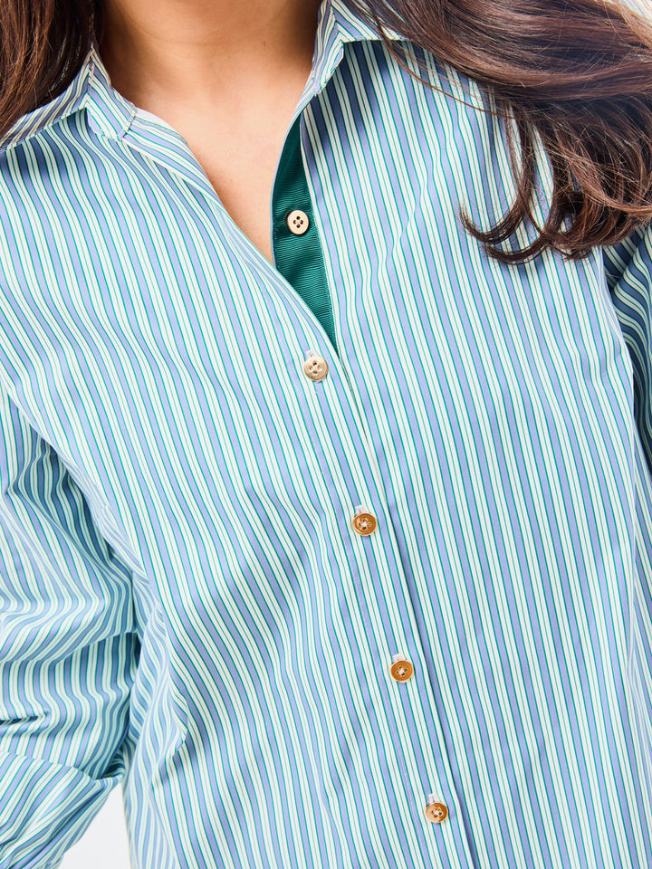 The Fiona Dress is a versatile piece that blends stylish details with everyday wearability. Featuring a contrast ribbon trim at the placket and a button-front design, it offers a polished, put-together look. The long sleeves with button cuffs provide a tailored fit, while the tiered hem adds a touch of flow and elegance.
