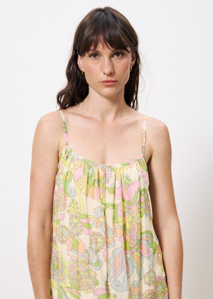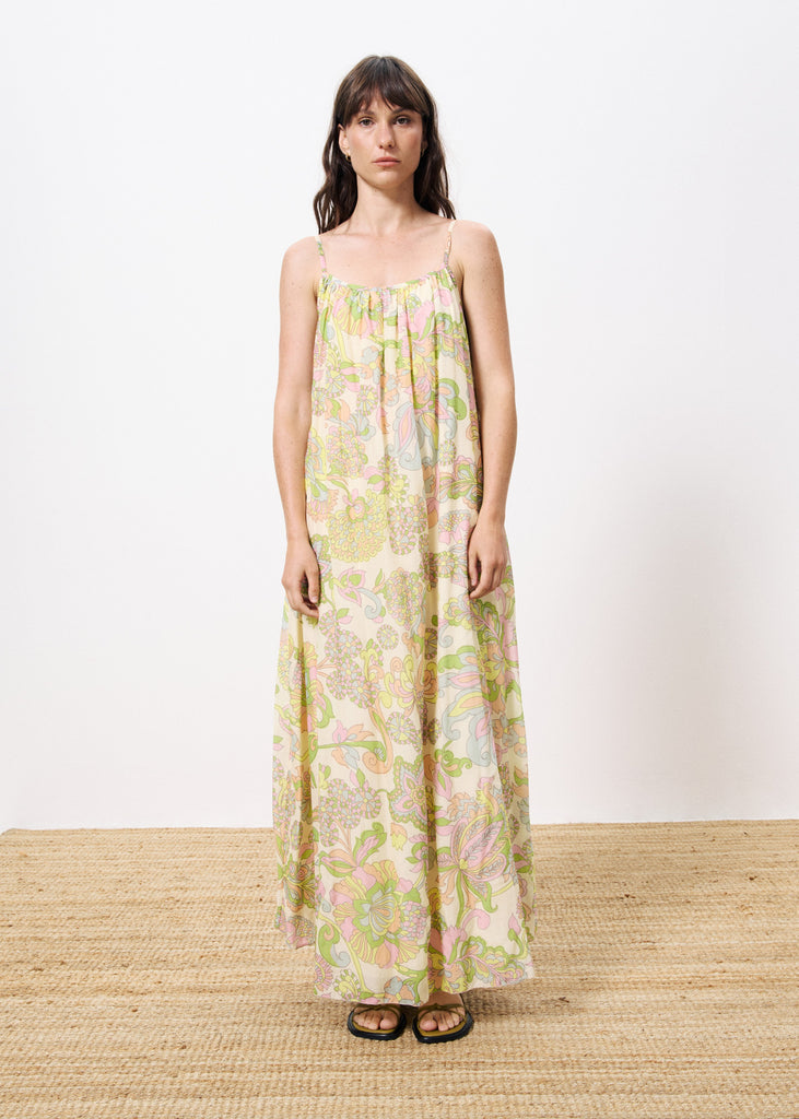 Introducing the Izaline Dress - the perfect choice for summer weddings! This stunning maxi dress features spaghetti straps and is made with a luxurious blend of 73% cotton and 27% silk. The gorgeous pastel colors are sure to turn heads, and the lining ensures a comfortable fit. Don't miss out on this must-have dress!