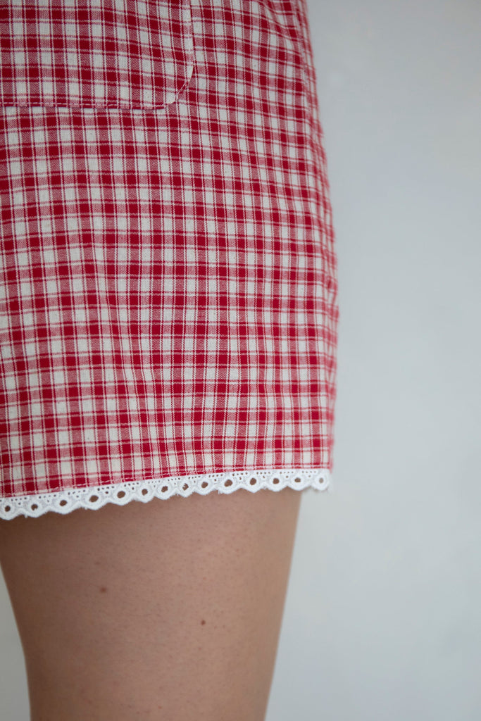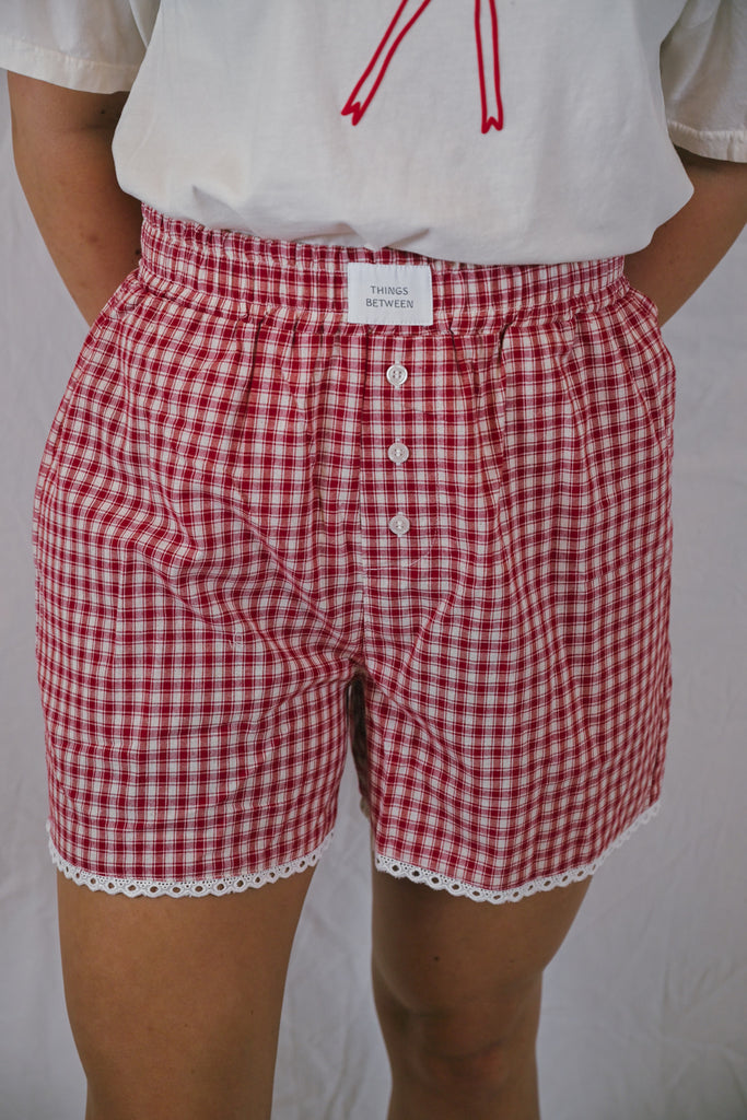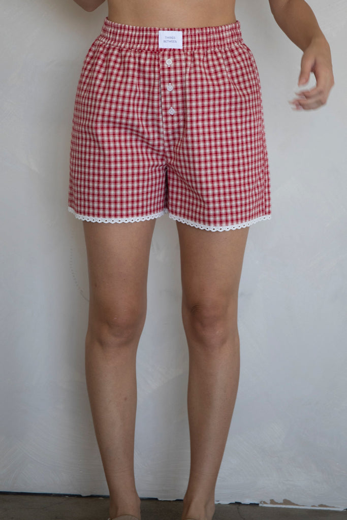 Lacey Gingham Boxer Shorts - Red
