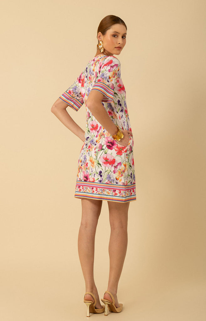 Introducing the Melina Jersey Dress. Crafted in luxurious matte jersey with a delicate mesh lining, this short-sleeved dress features a slim, straight fit with a knit rib neckline and convenient pockets at the hips. A sophisticated above-the-knee length (35.5" HPS) adds the perfect touch of elegance to this exclusive piece.