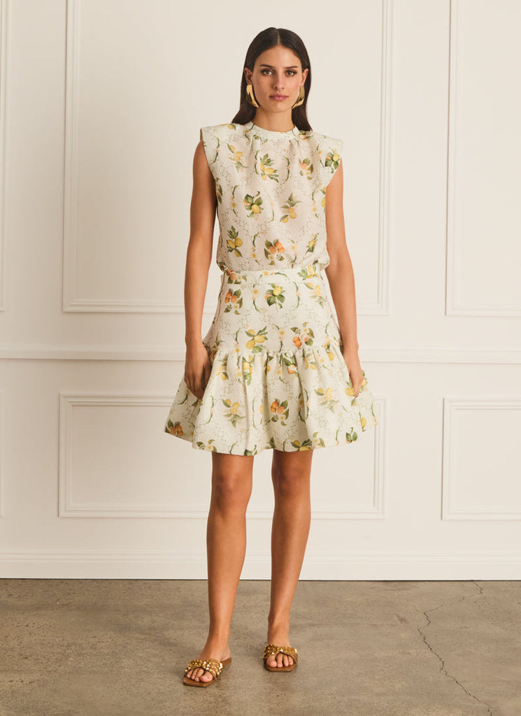 Introducing the luxurious and sophisticated Valencia Klara Top by Aqua Blu Australia. Made from a premium silk blend, this elevated t-shirt features shoulder pads and front pleats for a relaxed yet tailored fit. With a tie-up neck detail and curved hem, it's the perfect modern and chic look for any occasion.