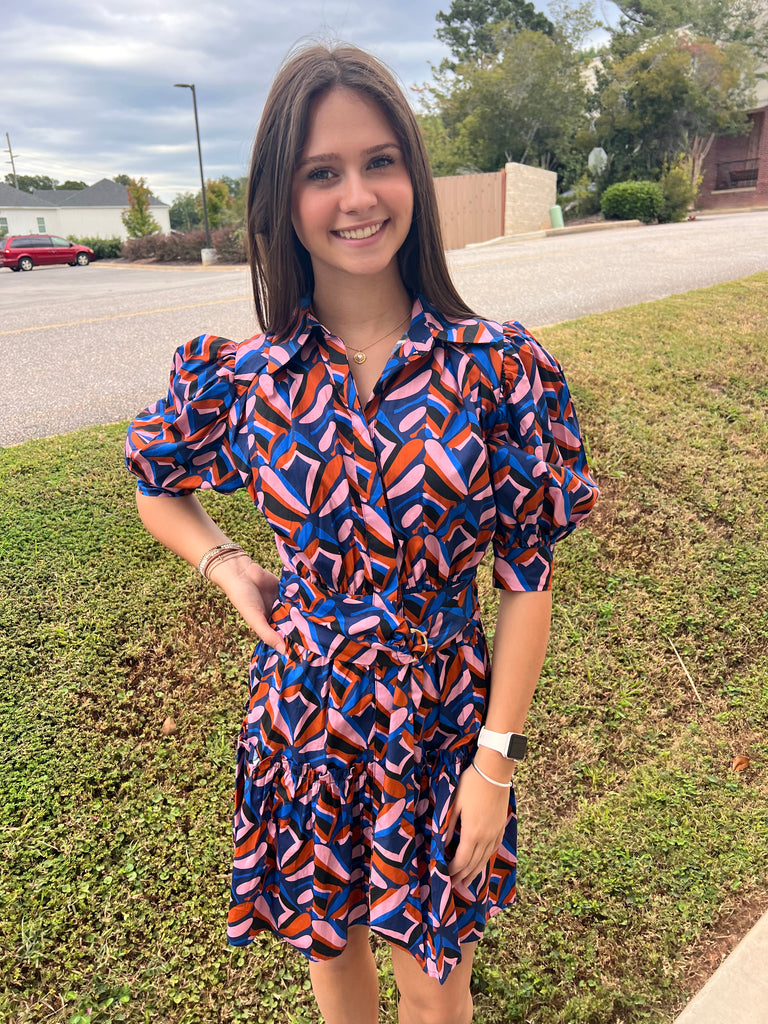 Step into game day with the Yara Abstract Tile Mini Dress, featuring elbow-length sleeves for just the right balance of coverage and comfort. Its fun, eye-catching pattern pairs perfectly with your favorite cute boots, creating a playful and stylish look that keeps you ready to cheer all day long.