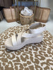 Step into effortless elegance with the Pascal Bone Wedge Sandal. This chic style features a secure wrap-around strap that keeps your foot snug and stylish, while a gleaming gold buckle at the ankle adds a touch of glamour. The comfortable 2.5" wedge heel lifts your look without sacrificing all-day wearability. Perfect for everything from casual outings to dressed-up occasions, this versatile sandal is your new go-to for looking put-together with minimal effort.