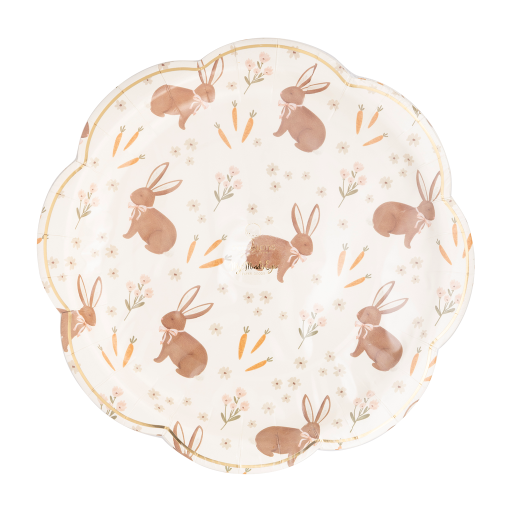 Elevate your hosting game with our Occasions Rabbit Scatter Plate! Featuring a charming rabbit design, this set of 8 scalloped paper plates is perfect for serving up snacks and appetizers. A fun and playful addition to any gathering! (Snack time just got a whole lot more hopping!)