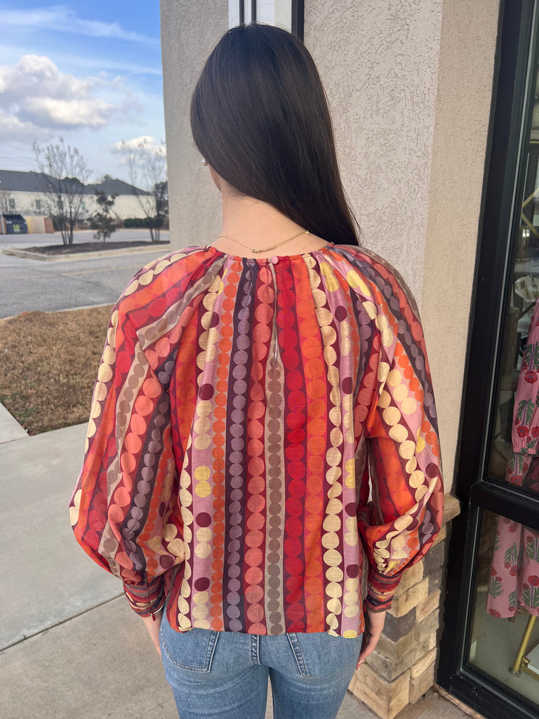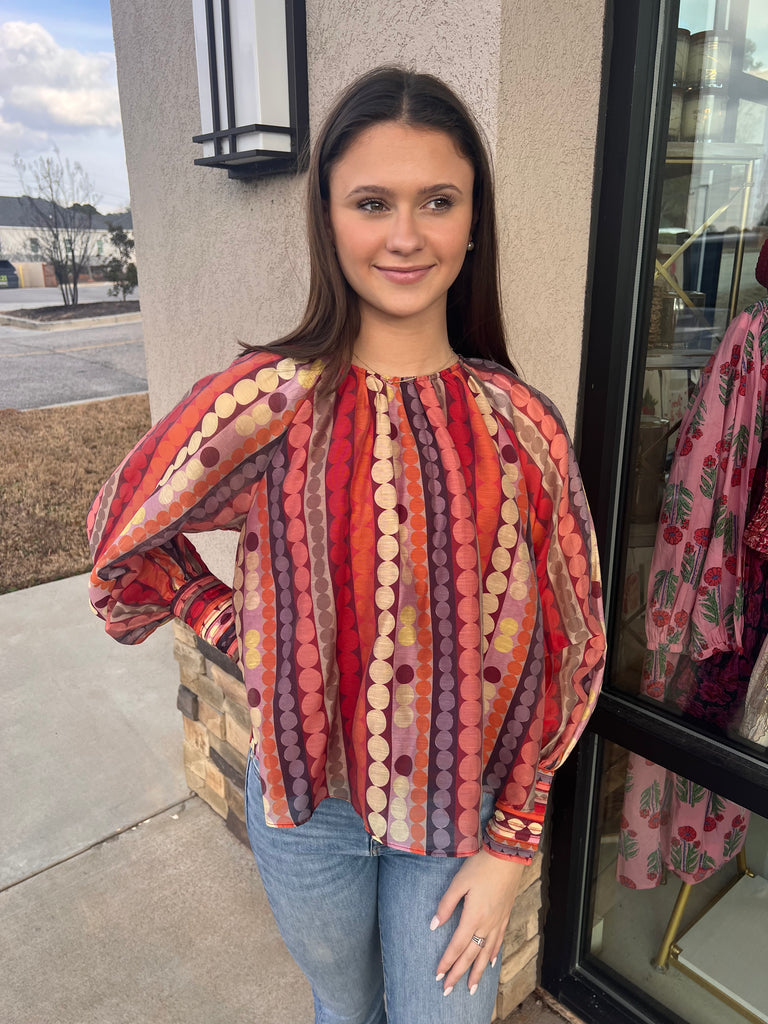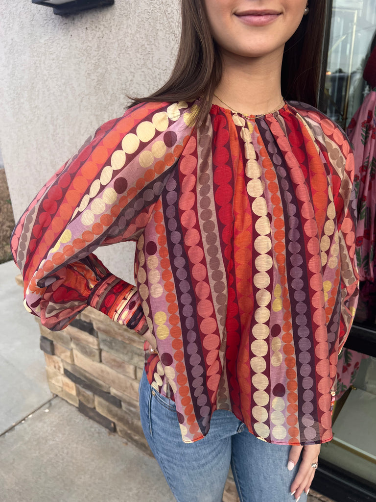 Meet the Farrah Multi Striped Blouse—your ticket to retro-chic perfection. This stunning red blouse rocks long sleeves with adorable zipper details at the cuffs, giving you that vintage cutesy vibe that's totally irresistible. The playful striped pattern adds personality and movement to every outfit. Whether you're channeling your inner '70s icon or just want to stand out with some nostalgic flair, the Farrah delivers charm and style in one fabulous package.