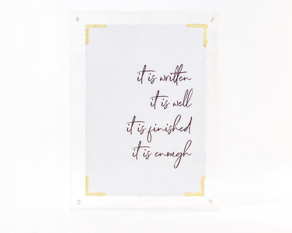 These beloved scripture signs are the perfect way to display your favorite verse or daily inspiration with style. Handmade with acrylic, recycled paper, and gold foil accents, these are the sweetest gift to give to loved ones or friends who need a little motivation!