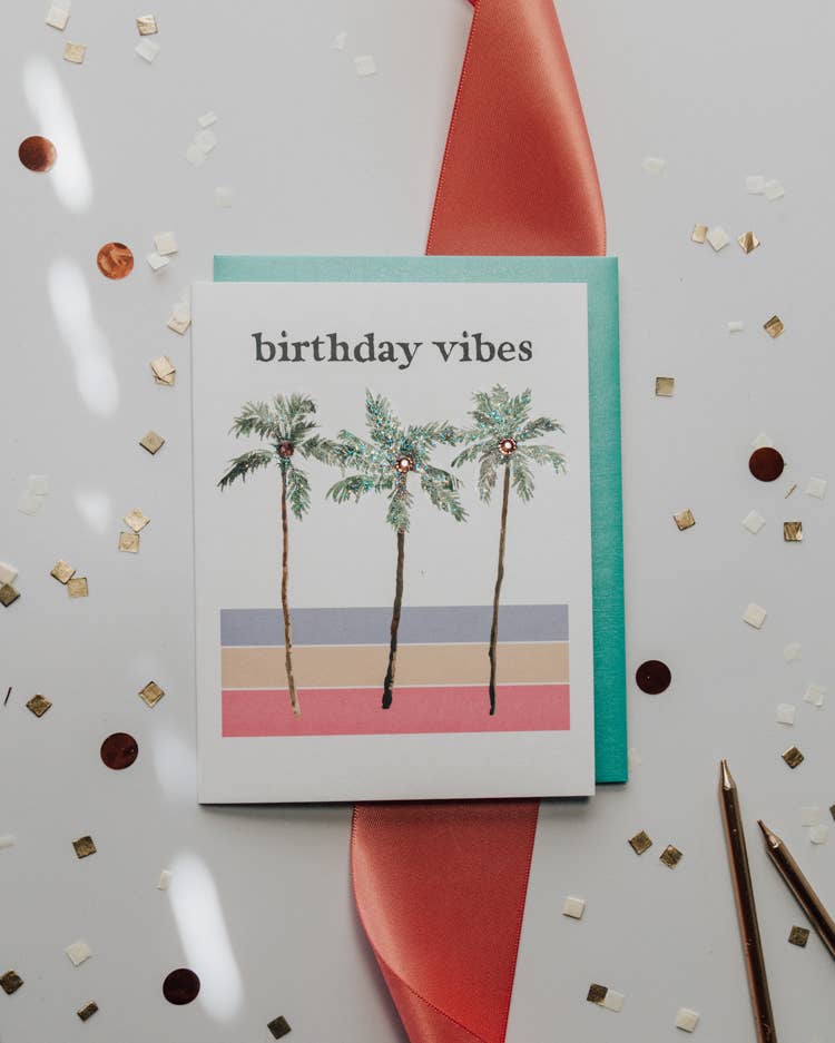 'Birthday Vibes' Palm Tree Birthday Greeting Card