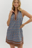 Add a touch of charm with the Bruster Chambray Mini Dress in a delightful brown and blue floral print. This sleeveless, lightweight dress features playful contrast binding on the inset V-neck collar and hem, plus convenient side pockets. Crafted from breathable 100% cotton woven fabric, it’s fully lined and non-sheer for easy, comfortable wear. Designed to keep you stylish and fun, it’s the perfect pick for sunny adventures. Modeled at 5'10" wearing a size Small.