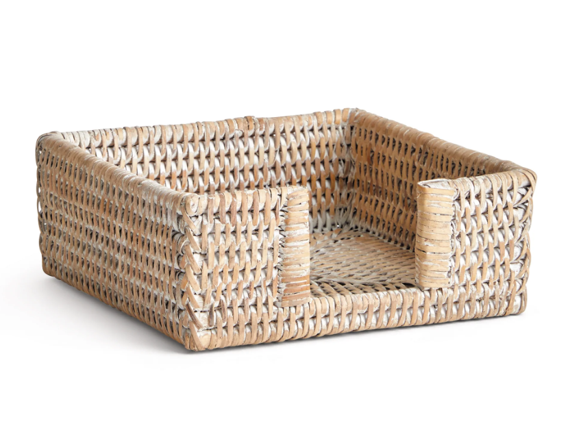 Neatly contain your cocktail napkins in casual, classic whitewashed rattan style. 100% handmade and woven into tight, uniform bands for long-lasting quality.