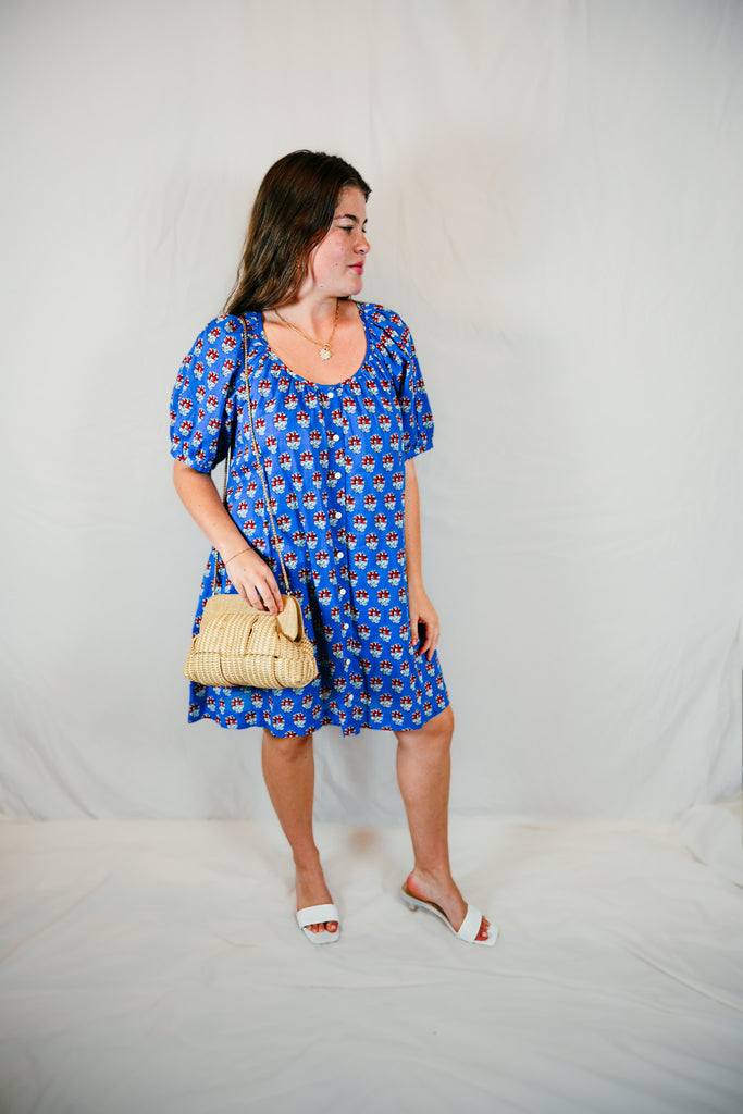 Effortlessly stylish and comfortable, our Day Dress in Bluebell is the perfect choice for a warm day. Featuring balloon sleeves, a loose fit, and a full button front, this mini dress is versatile enough for lounging, beach trips, and outings with friends. Plus, with pockets and manufactured at a top-quality facility in Jaipur, India, it's a must-have addition to your wardrobe!