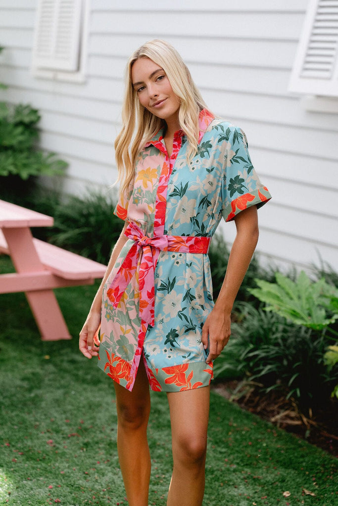 Fresh, vibrant, and unmistakably Briton Court — the Elena Mini brings a burst of color and charm to your spring wardrobe. This playful button-front mini is crafted in our signature soft viscose and features a striking mixed-floral print that feels both polished and fun.