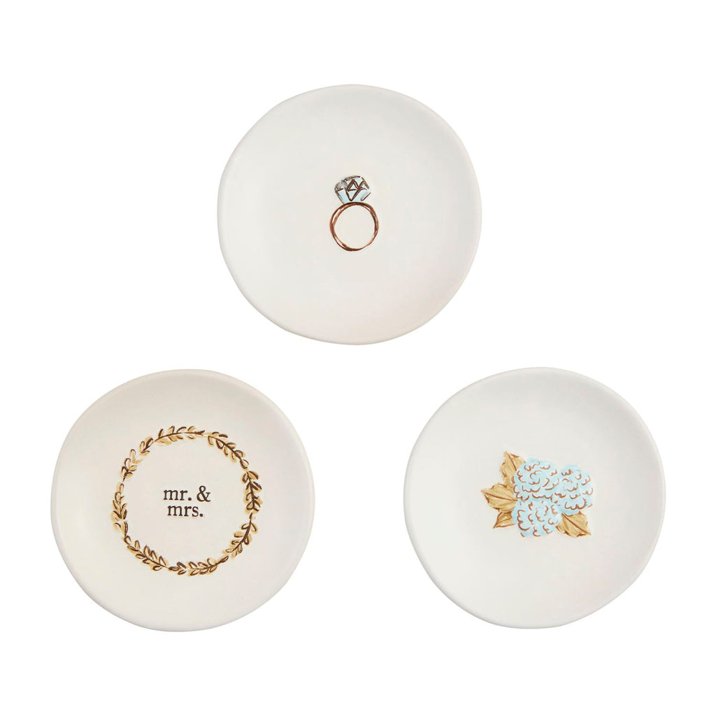 Keep your wedding band safe and sound with our Stoneware Wedding Ring Dish! Crafted with durable stoneware, this dish is a sweet and simple gift idea for the happy couple. With a 4" diameter and 3 unique styles to choose from, it's the perfect way to store and display your most precious symbol of love.