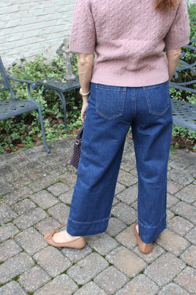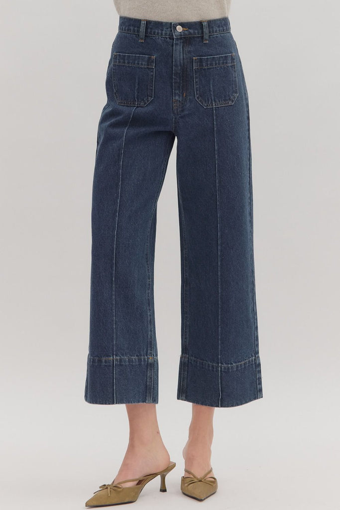 These Harvest Moon Denim Jeans bring relaxed charm with their wide-leg, ankle-length cut and wide cuff hem—perfect for showing off your favorite shoes. Crafted from a lightweight, breathable cotton-poly blend, they offer comfy all-day wear without the bulk. The button fly-front zipper closure adds a hint of classic flair, while front and back pockets keep essentials close and hands free. Unlined and non-sheer, these woven jeans combine ease and style effortlessly for any casual adventure.