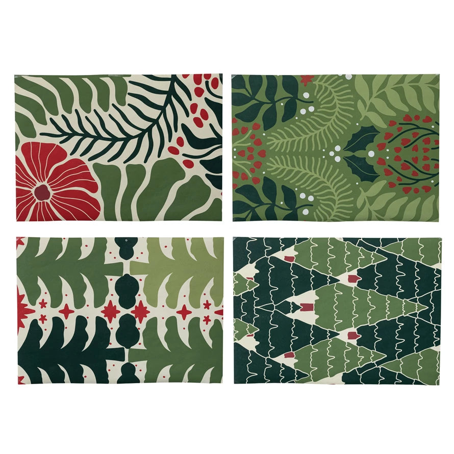28"L x 20"W Handmade Recycled Wrapping Paper Sheets w/ Seasonal Botanical Patterns, Multi Color,