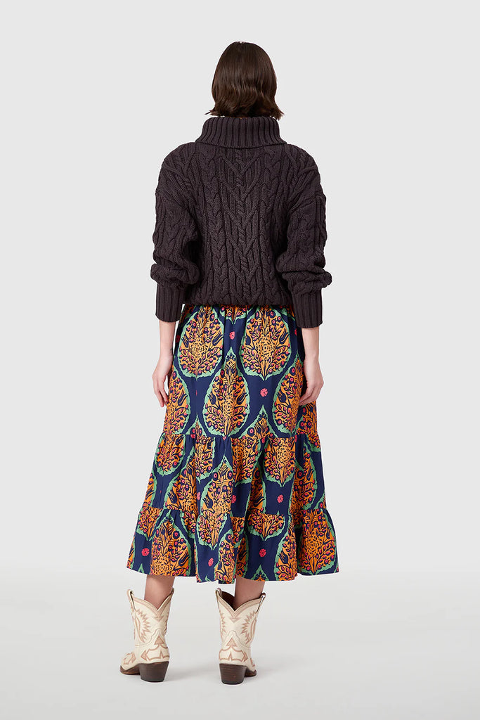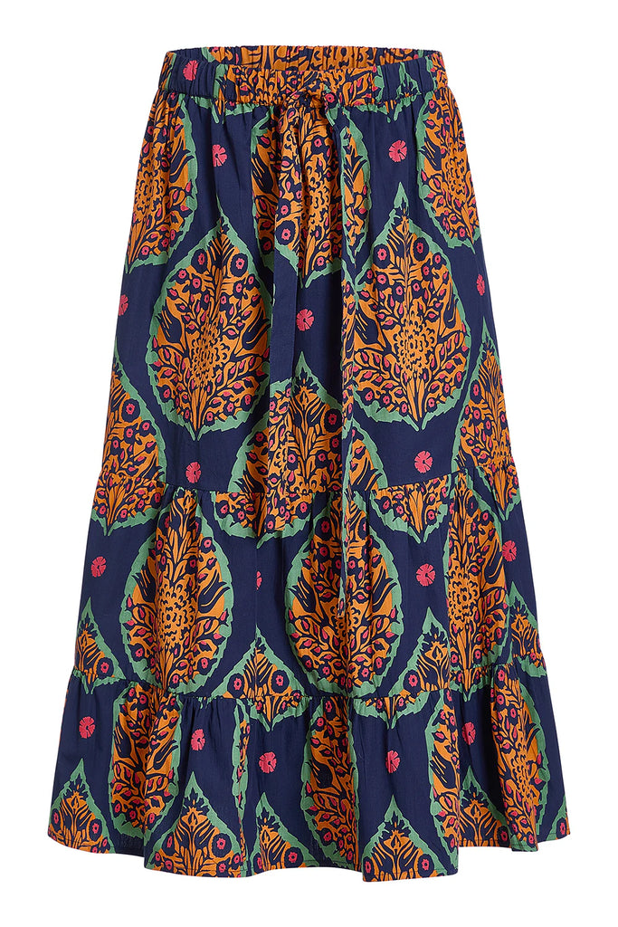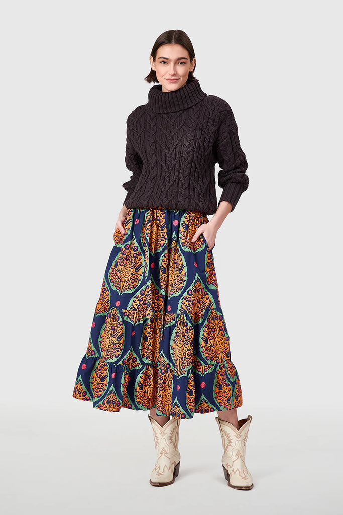 Elevate your look with our maxi Market Skirt. Featuring a tiered body and adjustable elastic waistband, this breezy skirt was designed with comfort and style in mind. Pair with a cute tee and sneakers for a casual day look, or a fitted tank and wedges for a night out.