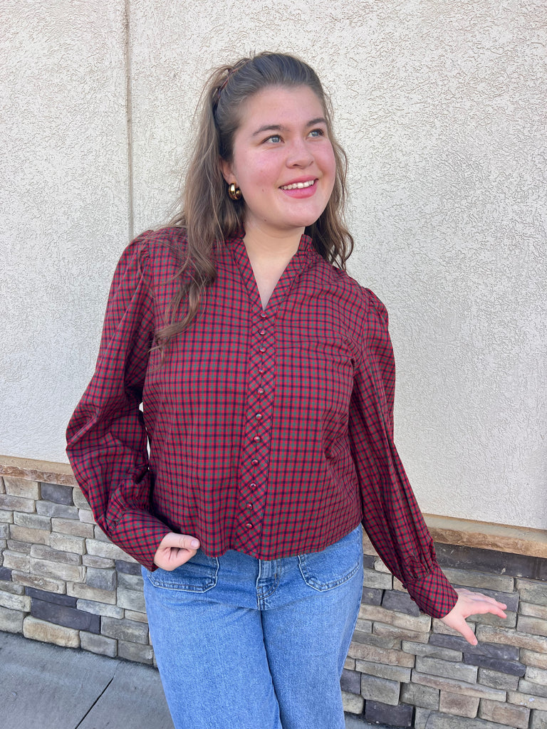 Elevate your holiday wardrobe with this timeless Reynold Red Plaid Blouse. Crafted with a classic long sleeve button-down silhouette, this sophisticated piece features a rich red plaid pattern that captures the festive spirit of the season. The structured design and quality construction make it versatile enough to transition from casual gatherings to more formal celebrations. Layer it under a blazer for polished elegance, or wear it standalone for understated charm. A wardrobe essential that brings warmth and style to your Christmas celebrations and beyond.