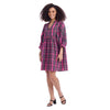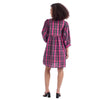 Cotton poplin dress features statement puff sleeves and V-neck with ruffle collar. Measures approximately 35 1/2" from shoulder to hem on size small.